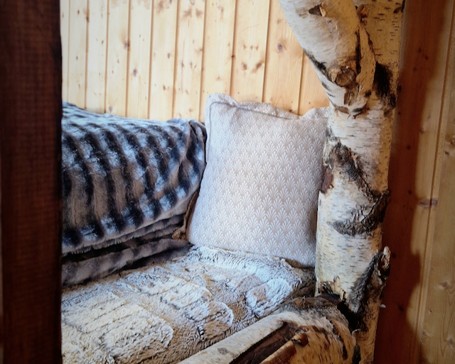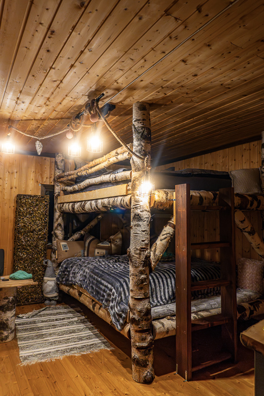 „Stuga“ ist der schwedische Begriff für Ferienhaus. Die Stuga in Lev Naturanda ist mit ihren 25m² klein, aber gerade richtig, um sich wohl zu fühlen. Vollständig aus Naturmaterialien erbaut, findet ihr hier ein Doppelstockbett aus echten Birkenstämmen gebaut, eine kleine Sitzecke mit Tisch, eine winzige Küche mit Kühlschrank, eine Garderobe im Eingangsbereich und ein kleines Bad mit Camping-WC. Natur pur, genau richtig, um mal echtes Schweden- und Lappland-Feeling zu erleben.