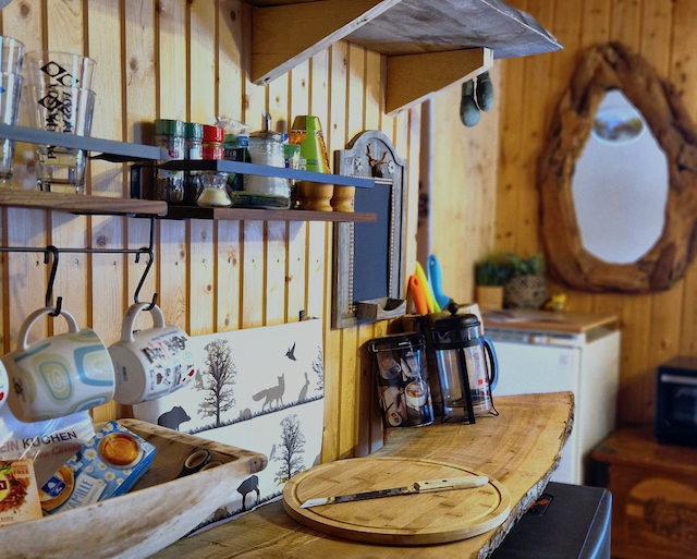 Dabei ist alles vorhanden, was ihr braucht: Wasserkocher, Mini-Backofen, Frenchpress, Kochutensilien sowie Kaffee und Tee. Lev Naturanda bietet zudem offene Feuerstellen und eine eigene, gemütliche Grillhüte. Bettwäsche und Handtücher sind vorhanden!