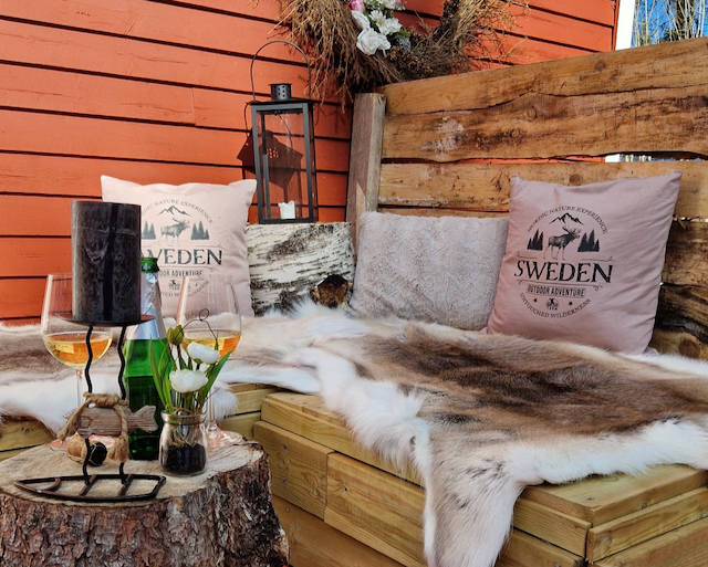 Was eine echte, naturnahe Unterkunft in Schwedisch Lappland ist, bietet natürlich auch – klar, eine Sauna! Das gehört in Skandinavien einfach dazu. Und vielleicht mindestens genau so verlockend ist der Whirlpool. Beides könnt ihr jederzeit dazubuchen, wenn euch der Sinn nach Schwitzen und heißem Wasser steht.