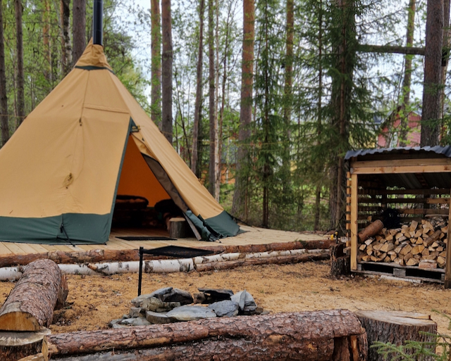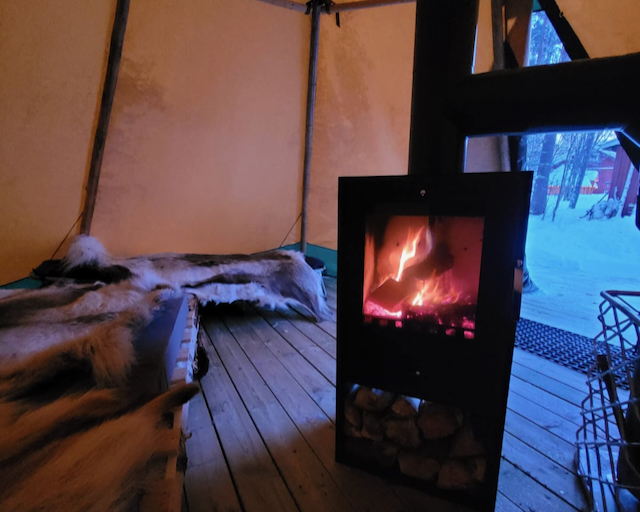 Die Zelte von Lev Naturanda sind keine „gewöhnlichen“ Zelte: Die hochwertigen Adventure Tents sind aus dickem Gewebe, das auch den schwedischen Wetterverhältnissen standhält, und mit dem doppelten Zeltofen wird es so richtig warm! Dazu dürft ihr euch in dicke Polarschlafsäcke kuscheln oder an der Feuerstelle zwischen den beiden Zelten grillen, singen, chillen. Und wer möchte, kann hier auch einen Stromanschluss bekommen. Brennholz und Diesel für den Ofen sind stets verfügbar und im Preis inbegriffen.