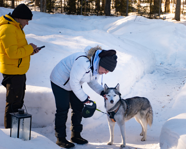 • Eure Hunde genießen kostenlos mit euch die Natur Lapplands und wohnen frei in den Unterkünften von Lev Naturanda.